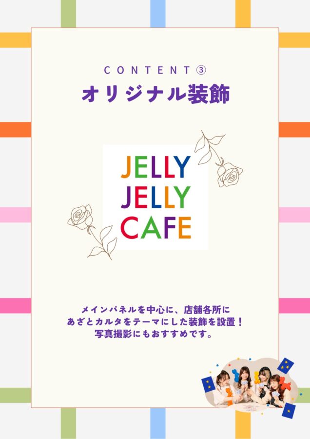 JELLY JELLY CAFE メインパネルを中心に店舗各所へ『あざとカルタ』をテーマにした装飾を配置!