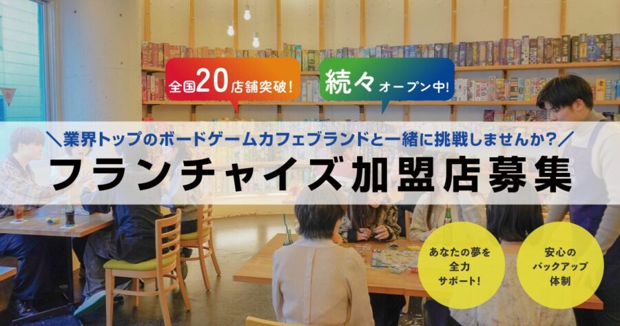 <blockquote class="wp-embedded-content" data-secret="NFHvkNc8LA"><a href="https://jellyjellycafe.com/fc">フランチャイズ加盟店募集!</a></blockquote><iframe sandbox="allow-scripts" security="restricted" src="https://jellyjellycafe.com/fc/embed#?secret=NFHvkNc8LA" width="600" height="400" title="“フランチャイズ加盟店募集!” — JELLY JELLY CAFE ボードゲームカフェ" data-secret="NFHvkNc8LA" frameborder="0" marginwidth="0" marginheight="0" scrolling="no" class="wp-embedded-content"></iframe><script type="text/javascript"> /* <![CDATA[ */ /*! This file is auto-generated */ !function(d,l){"use strict";l.querySelector&&d.addEventListener&&"undefined"!=typeof URL&&(d.wp=d.wp||{},d.wp.receiveEmbedMessage||(d.wp.receiveEmbedMessage=function(e){var t=e.data;if((t||t.secret||t.message||t.value)&&!/[^a-zA-Z0-9]/.test(t.secret)){for(var s,r,n,a=l.querySelectorAll('iframe[data-secret="'+t.secret+'"]'),o=l.querySelectorAll('blockquote[data-secret="'+t.secret+'"]'),c=new RegExp("^https?:$","i"),i=0;i<o.length;i++)o[i].style.display="none";for(i=0;i<a.length;i++)s=a[i],e.source===s.contentWindow&&(s.removeAttribute("style"),"height"===t.message?(1e3<(r=parseInt(t.value,10))?r=1e3:~~r<200&&(r=200),s.height=r):"link"===t.message&&(r=new URL(s.getAttribute("src")),n=new URL(t.value),c.test(n.protocol))&&n.host===r.host&&l.activeElement===s&&(d.top.location.href=t.value))}},d.addEventListener("message",d.wp.receiveEmbedMessage,!1),l.addEventListener("DOMContentLoaded",function(){for(var e,t,s=l.querySelectorAll("iframe.wp-embedded-content"),r=0;r<s.length;r++)(t=(e=s[r]).getAttribute("data-secret"))||(t=Math.random().toString(36).substring(2,12),e.src+="#?secret="+t,e.setAttribute("data-secret",t)),e.contentWindow.postMessage({message:"ready",secret:t},"*")},!1)))}(window,document); //# sourceURL=https://jellyjellycafe.com/wp-includes/js/wp-embed.min.js /* ]]> */ </script>