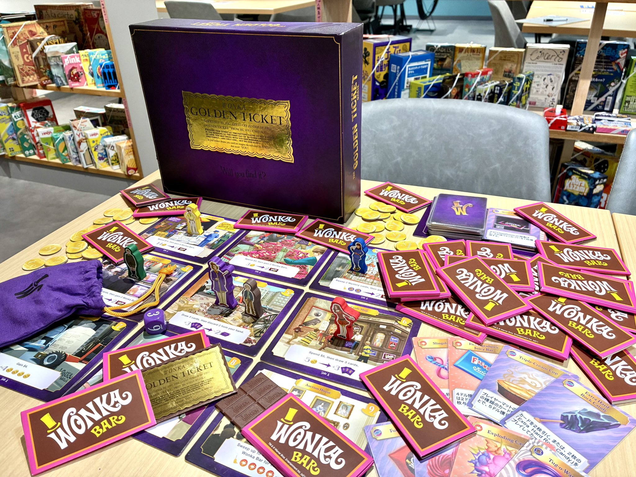 手番終了時にウィリー・ウォンカが同じマスにいれば、さらにチョコレートが貰えちゃう!