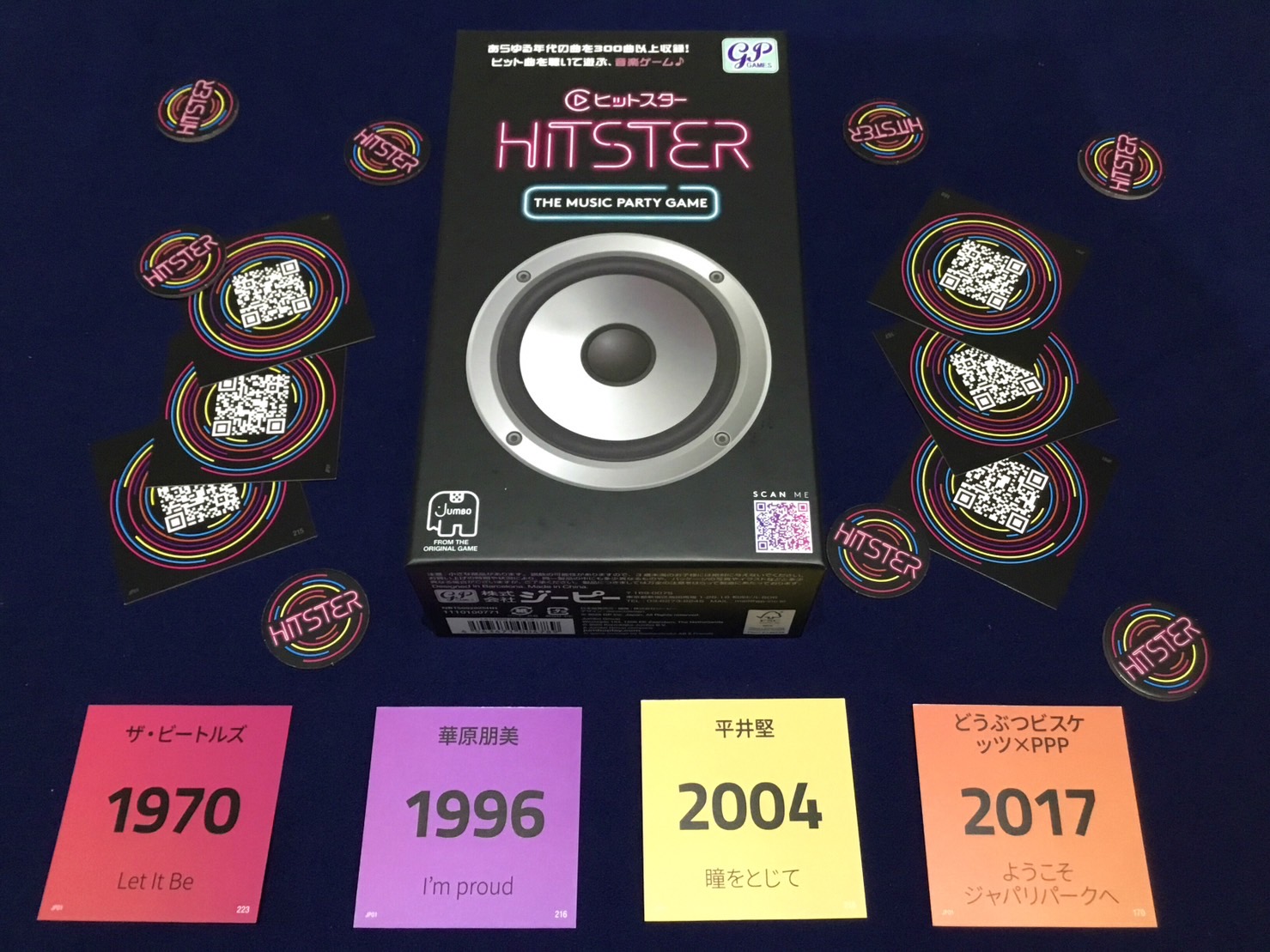 DJ役はミュージックカードを引いて、アプリでカードに書かれたQRコードを読み込み曲を再生します。曲を聞いてリリースされた年を予想し、自分のタイムラインにカードを並べましょう。カードを表にして、書かれている年が正しく時系列順に並んでいればカードを得られます。誰よりも早く10枚を集めた人が勝利します。
