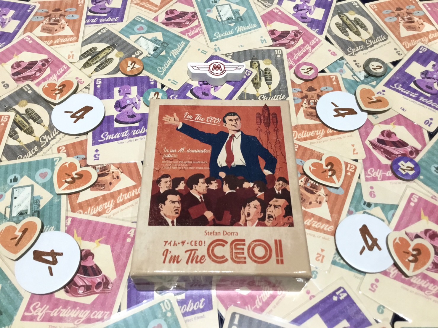 プレイヤーは従業員として自身が勝つトリックの数と色を予測・宣言し、その通りにトリックに勝つことを目指します。ただし、このゲームではCEOのプレイヤーがあなたの計画を妨害してきます。