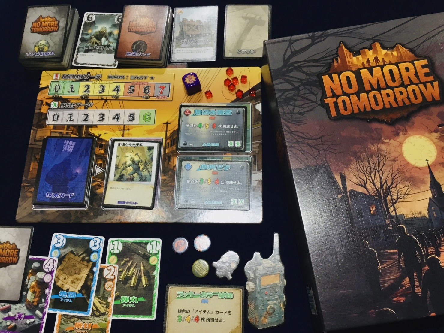 迫りくるゾンビたちを退けながら危機を脱することを目指す、協力型トリックテイキングゲームです。