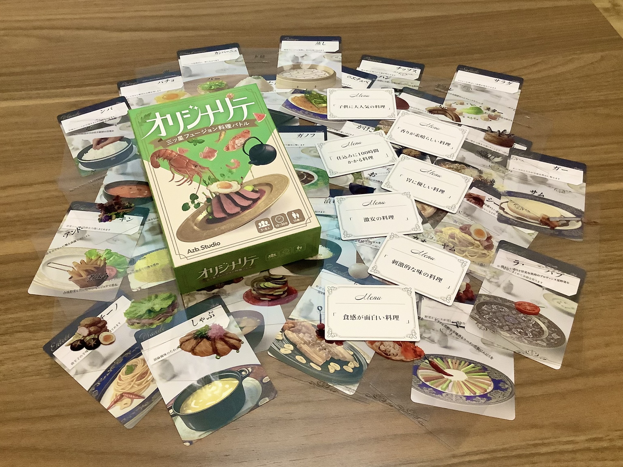 素材カードの組み合わせ次第で料理数は無限大!ルールもわかりやすく、繰り返し遊べてすぐに盛り上がれます!