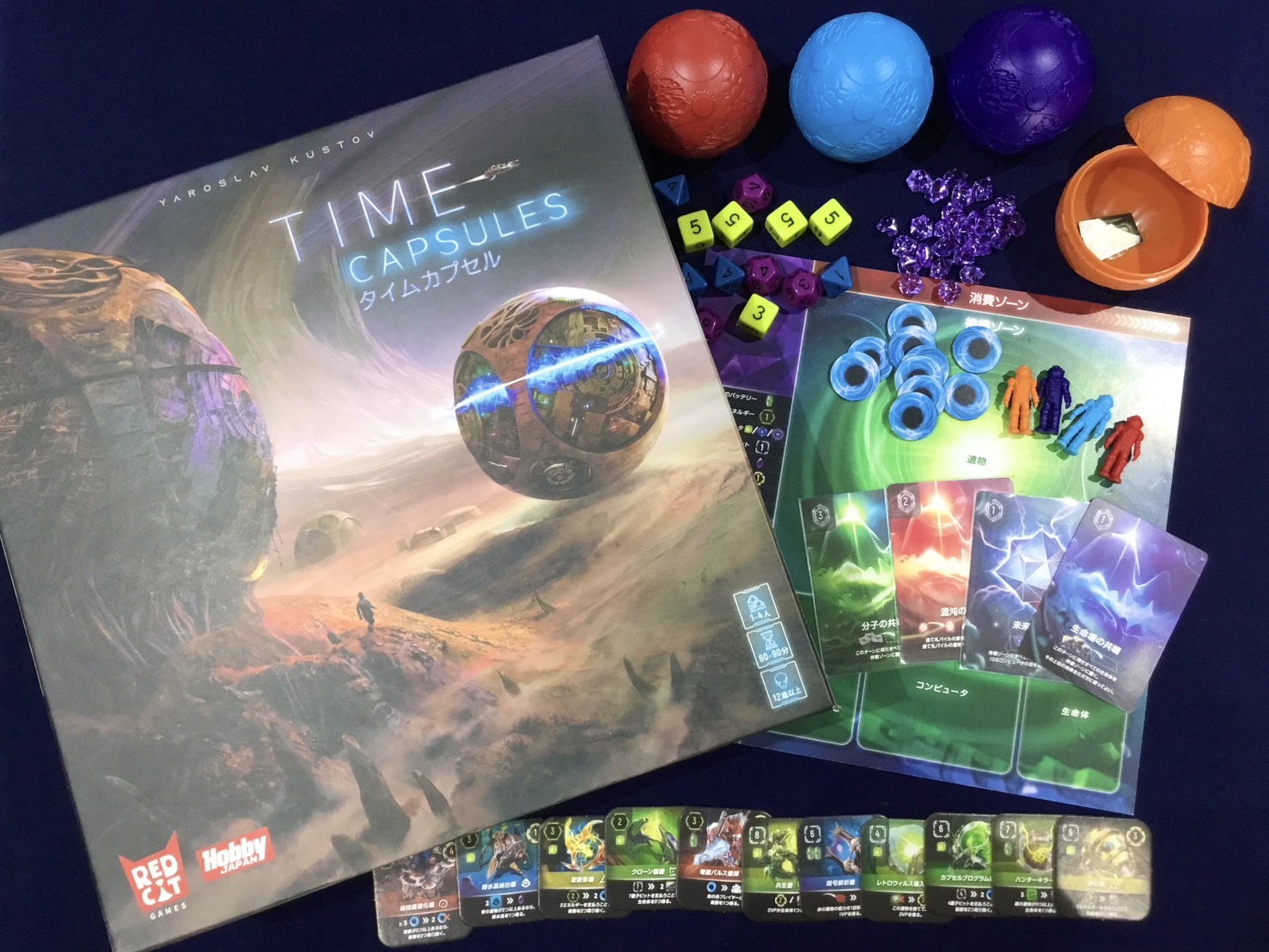 自分の手番がきたらバッグからプラスチック製のカプセルを取り出し、中の物体を使用して新たな知識や遺物から能力や勝利ポイントを獲得します。獲得したものはカプセルの中に入れる必要があり、物体や資源は異なるメカニズムを持っています。それらをうまく組み合わせた戦略を立て、カプセルの中身を構築することが重要です。