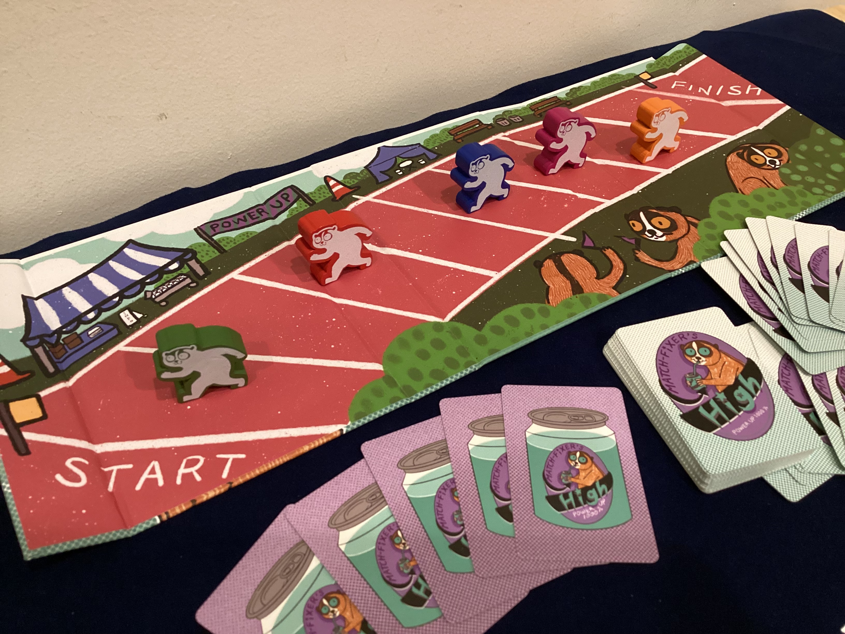 最近カフェインを飲んだ人がスタートプレイヤーになり、順番に前のカードより強いカードを出します。出したカードの枚数分トラックを進めます。カードを出せない場合は、場の両端のカードのどちらかを手札に加えます。怪しいドリンクはワイルドカードでどの数字としても使うことができます。しかし、誰かがゴールした時に怪しいドリンクを持っているプレイヤーは脱落になってしまいます。